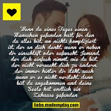 Wenn Du Eines Tages Einen Menschen Gefunden Hast Fur Den Du Alles Bist Wo Nichts Kompliziert Ist Romantische Spruche Aufmunternde Spruche Weisheiten Spruche